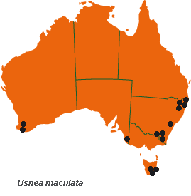 | Occurs on rock in upland to montane areas of W.A., S.A., N.S.W., A.C.T. and Tas. Also in East Africa, South Africa and Madagascar. | ||