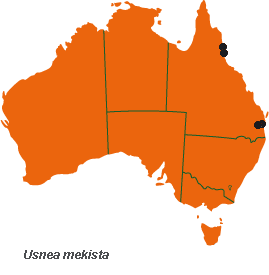 | Rare on trees at rainforest margins in eastern Qld. Also in East Africa and India. | ||