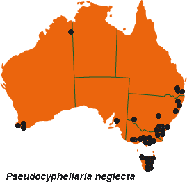 Acta Horti Gothob. 14: 30 (1940); Stictina neglecta Müll.Arg., Flora 70: 58 (1887); Sticta neglecta (Müll.Arg.) Zahlbr., Cat. Lich. Univ. 3: 396 (1925). T: New England, [N.S.W.], coll. unknown; holo: G 002121. ***** Stictina mougeotina var. dissecta Müll.Arg., Bull. Soc. Bot. Belg. 37: 34 (1898); Pseudocyphellaria mougeotiana var. dissecta (Müll.Arg.) Vain., Hedwigia 37: 34 (1898). T: New Zealand, s. loc. [probably Wellington], C.Knight: holo: G 002247. ***** Stictina crocata f. esorediosa Müll.Arg., Flora 66: 354 (1883); Pseudocyphellaria crocata var. esorediosa (Müll.Arg.) Vain., Résult. Voy. Belgica, Lich. 29 (1903). T: Mt Napier, Vic., S.Johnson; lecto: G, fide D.J.Galloway, Lichenologist 15: 307 (1983). ***** Stictina luridoviolacea Stirt., Trans. & Proc. New Zealand Inst. 32: 73 (1900); Sticta luridoviolacea (Stirt.) Zahlbr., Cat. Lich. Univ. 3:393 (1925). T: Snowy Creek, Owens River, Vic., 1881, Mrs McCann; lecto: BM, fide R.W.Rogers, Austrobaileya 1: 508 ('1982') [1983]. ***** Pseudocyphellaria australiensis H.Magn., Acta Horti Gothob. 14: 9 (1940). T: Encounter Bay, S.A., 1926, W.Cleland; holo: UPS. ***** Pseudocyphellaria crocata var. isidiotyla H.Magn., Acta Horti Gothob. 14: 14 (1940). T: Bell Rd, Mt Wilson, N.S.W., 7 Nov. 1926, G.Einar & Greta Du Rietz 581:2; holo: UPS. ***** Pseudocyphellaria crocata var. isidiotyla f. coralloidea H.Magn., Acta Horti Gothob. 14: 15 (1940). T: Orbost, Vic., F.R.M.Wilson; holo: ?UPS.