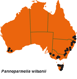 New Zealand J. Bot. 16: 267 (1978); Anzia wilsonii Räsänen, Ann. Bot. Soc. Zool.-Bot. Fenn. 'Vanamo' 20: 2 (1944). T: Eastern Creek, N.S.W., 1892, F.R.M.Wilson s.n.; holo: H; iso: BM, G. Parmelia angustata var. isidiella Stirt., Trans. & Proc. New Zealand Inst. 32: 81 (1900); Anzia angustata var. isidiella (Stirt.) Zahlbr., Cat. Lich. Univ. 6: 276 (1929); Pannoparmelia angustata var. isidiella (Stirt.) Zahlbr., Cat. Lich. Univ. 8: 569 (1932). T: Tilba Tilba, N.S.W., Mrs Reader s.n.; lecto: GLAM, fide R.W.Rogers, Austrobaileya 1: 506 (1982).