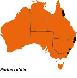 | Occurs in Christmas Is., eastern Qld (especially in the north-east) and in eastern N.S.W.; grows on the leaves of shrubs and trees in lowland and montane rainforest. A common pantropical species; its range includes Lord Howe Is. | ||