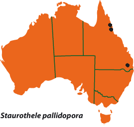 Muelleria 8: 275 (1995), as pallidopora. T: below Little Falls, Bunya Mountains Natl Park, Qld, 5 Sept. 1993, P.M.McCarthy 768; holo: MEL; iso: BRI.