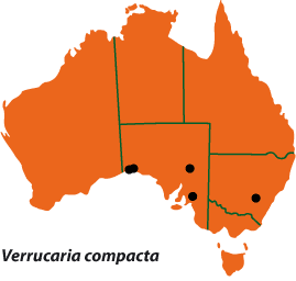 | Occurs on limestone and calcareous lithosol in southern S.A. and N.S.W.; reports from W.A. and Vic. (R.B.Filson, Checklist Austral. Lichens & Allied Fungi 147, 1996) could not be confirmed. Also in Europe, North America and New Zealand. | ||
