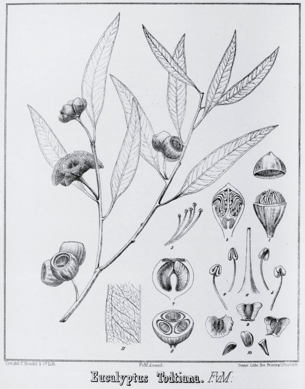 Illustration of Eucalyptus todtiana in Eucalyptographia.