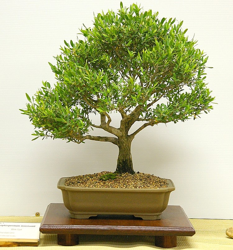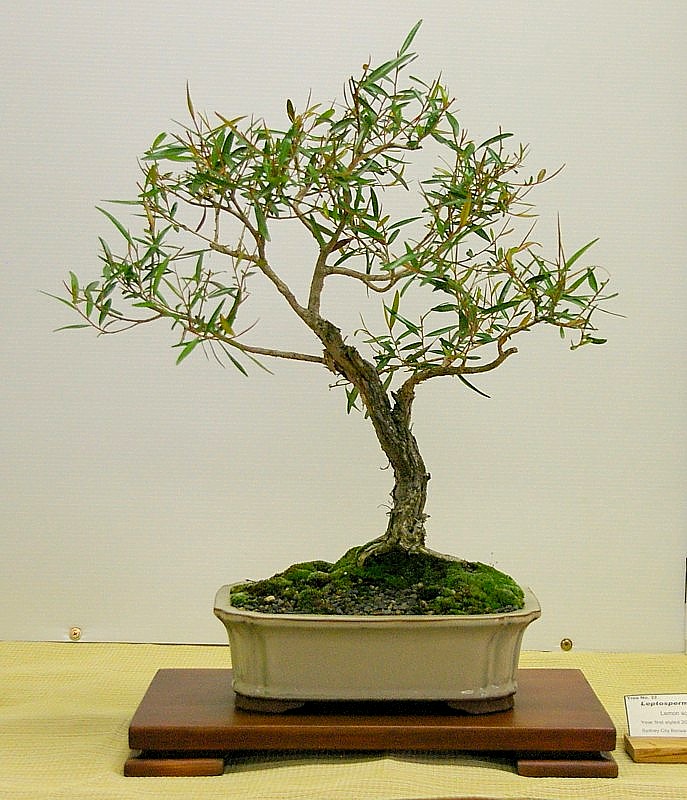Leptospermum petersonii This tree was neglected, starved and dry when it was purchased for $10 from an old nursery. It is still developing and with regular pruning will develop denser foliage pads but even now it imparts the airy Aussie-bush-tree feel to the foliage. This is one of the few times I feel an oriental pot looks right with an Aussie native. |