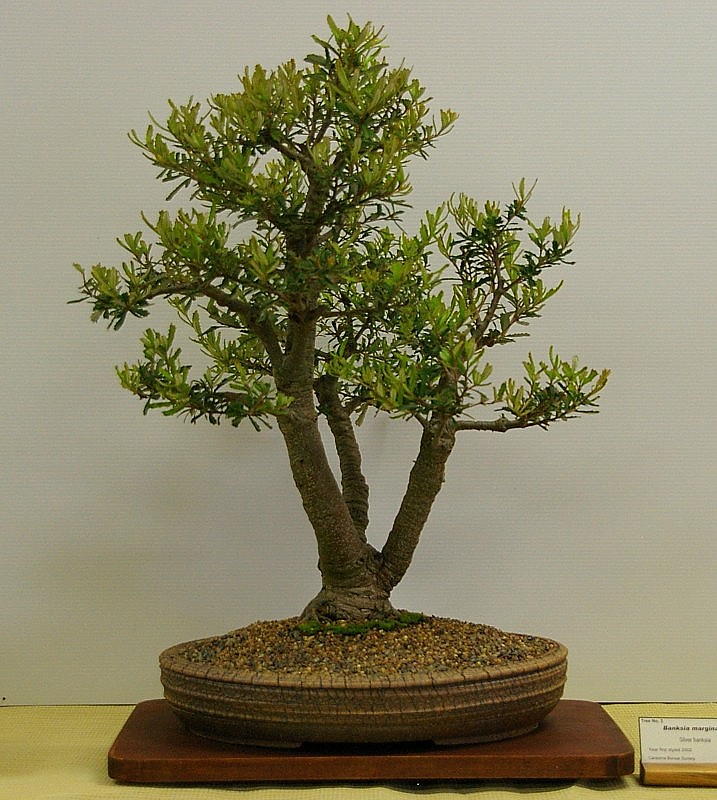 Banksia marginata This stock plant was given to me by a local nursery because it was hanging over the pot and no one would buy it. A bit of bonsai styling and growth and it won Champion Native Bonsai at the Sydney Royal Easter Show in 2005. |