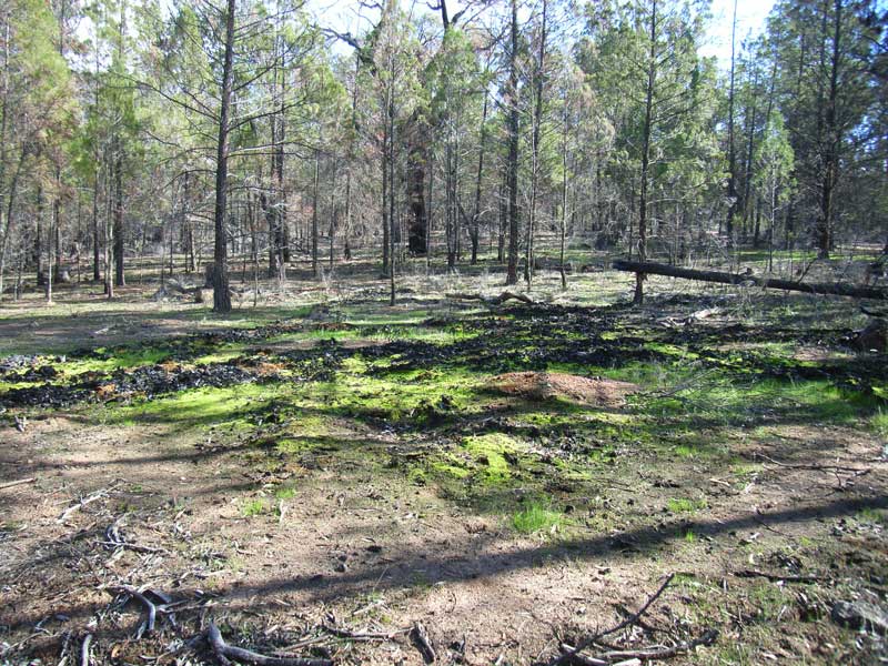 Moss in charcoal bed after fire - Weddin Mountain National Park, NSW