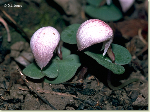 Corybas barbarae D.L.Jones, Austrobaileya 2(5): 548-50, f. 1 D, E & F (1988). Type: Queensland. Moreton District: Heritage Creek, south-eastern side of Mt Tamborine, protected slopes in open forest, 21 May 1987, D.L. Jones 2484 and B.E. Jones (holo BRI; iso AD, AMES, BRI, CANB, K, MEL, MO, NSW, PERTH, US).