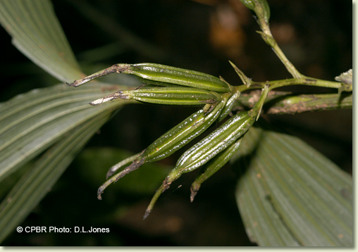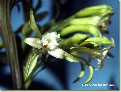 Occurs in lowland rainforests and on lower ranges and tablelands, where it grows in friable soil in shady, humid situations. The flowers are white, cinnamon scented and last only a few days. They are believed to be pollinated by moths.