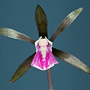 Terrestrial herb forming clonal colonies. Sterile plants a solitary leaf only. Fertile plants initially a terminal inflorescence, a single leaf arising later from base of scape. Tubers solitary, fleshy, ovoid, 1-2 cm wide. Leaf solitary, apical, prostrate, held well above ground, cordate, 2.5-3.5 cm wide, dark green above, reddish beneath, margins irregular, apex acute. Inflorescence a terminal raceme, single-flowered, 100-200 mm long, fleshy; peduncle elongating in fruit. Flower solitary, opening widely, resupinate, porrect to nodding, star-shaped, 25-30 mm x 25-30 mm, pink or mauve. Sepals and petals spreading widely. Dorsal sepal erect, narrowly lanceolate, 18-23 mm x 2.5-3 mm. Lateral sepals free, widely divergent, deflexed, narrowly lanceolate, 18-23 mm x 2.5-3 mm. Petals spreading, linear, 15-18 mm x 1.5-2 mm. Labellum 14-18 mm x 5-6 mm, 3-lobed; lateral lobes erect; midlobe sharply recurved, papillate, with densely papillate ridge. Column 6 cm long, wider towards apex. Column foot absent. Capsules pendulous, dehiscent.