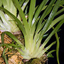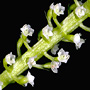 Epiphytic or lithophytic herb with single, fan-like growth that enlarges each year. Leaves 4-10, crowded, erect to prostrate, distichous, alternate, in fan-like array, sessile, bases sheathing stem, closely imbricate; lamina articulate on apex of leaf base, linear, 10-35 cm x 2-2.5 cm, dark green, thin-textured, conduplicate in lower third, apex unequally emarginate. Inflorescence an axillary raceme, erect to arching, 200-450 mm long, thin, wiry; base sheathed by conduplicate leaf base; pedicels 2.5 mm long, including ovary. Flowers numerous, resupinate, porrect, cupped, 2-2.5 mm x 2-2.5 mm, white. Sepals and petal spreading, ovate, apices acute. Dorsal sepal porrect, 1.5 mm x 1 mm. Lateral sepals free, divergent, 1.5 mm x 1.5 mm, bases fused to column foot. Petals incurved, 1 mm x 0.7 mm. Labellum unlobed, 1.2 mm x 1.2 mm, decurved near the middle, with shallow basal depression containing sticky liquid. Column 1 mm long. Column foot short, slightly curved. Capsules porrect, dehiscent.