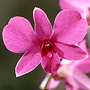 Epiphytic or lithophytic herb forming small to medium-sized clumps. Pseudobulbs crowded, erect, cylindrical, 30-60 cm x 2-2.5 cm, green or purplish. Leaves 8-13, scattered along upper half of stem, erect to prostrate, distichous, alternate, sessile, bases sheathing pseudobulb; lamina ovate to lanceolate, 8-14 cm x 4-5 cm wide, dark green, tough. Inflorescence an axillary raceme, 200-400 mm long, arching. Flowers 8-20, resupinate, erect to porrect, 35-45 mm wide, pink to mauve, sometimes with white margins. Sepals and petals spreading to recurved, often undulate. Dorsal sepal oblong, 20-25 mm x 8-10 mm. Lateral sepals similar to dorsal sepal, 20-25 mm x 8-10 mm, fused to column foot at base. Petals broader than sepals, obovate to spathulate, 25-28 mm x 16-20 mm. Labellum 22 mm x 20 mm, 3-lobed; lateral lobes erect, prominently veined, embracing column; midlobe decurved; margins undulate, with 5 hairy ridges. Column porrect, 4-6 mm long, with longitudinal ridge. Column foot 10-13 mm long. Capsules penduluous, dehiscent.