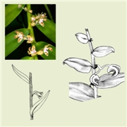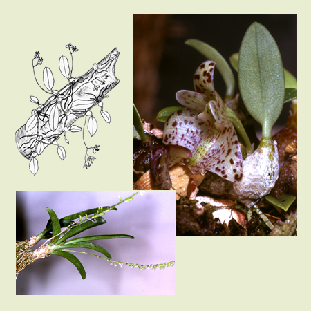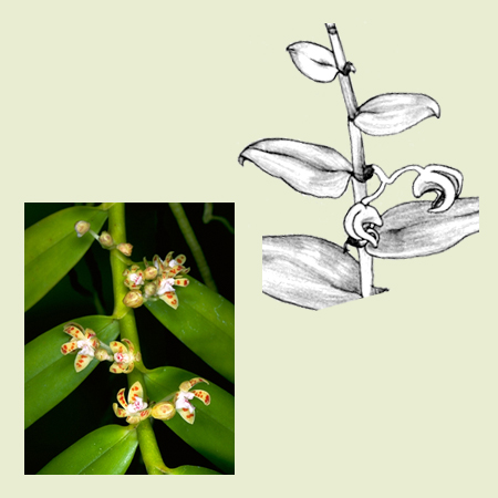 Leaf opposed: in some epiphytes the inflorescence arises on a section of the stem opposite a leaf (not in the leaf axil). |