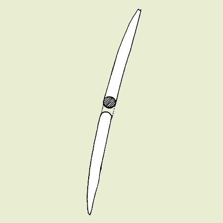 Terete: like a slender, tapering cylinder, and more or less circular in any cross section. |