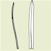 Falcate: uniformly curved (sickle-shaped). |