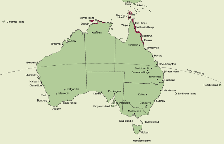 A small genus of 3 species, 1 each in India, Indonesia and Australia. The Australian species, Chiloschista phyllorhiza, is distributed in the northern parts of the Northern Territory, including Bathurst Island, some Torres Strait islands and between Cape York (about 17º16' S) and the Tully River (about 10º40' S) in northern Queensland. State occurrence: Queensland (including Moa and Thursday Islands), Northern Territory.