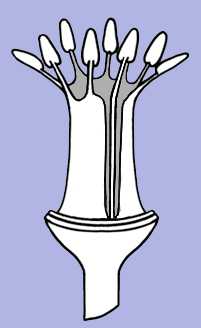 Stamens fused into a closed tubeThe staminal filaments are fused to each other forming a closed tube. |