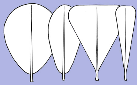 Leaf or leaflet shapeThe (plan) shape of a simple or unifoliolate leaf, or for divided (compound) leaves this refers to the shape of the leaflets. Note that the description of leaf shape is at best approximate, given that there exists a full range of variation between each idealised shape (e.g. broadly ovate may approximate orbicular, and narrowly ovate, linear) making interpretations somewhat subjective. Further complications arise from variation between individuals of a taxon, within an individual specimen, and in the case of compound leaves, between individual leaflets. Users should take a relatively broad interpretation of leaf shape, and enter the most commonly observed condition(s). When leaves/leaflets are deeply toothed or lobed, leaf/leaflet shape is approximated by a line drawn about the apices of each tooth/lobe. Return to Character index |