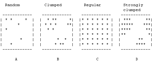- Many species do not have random or regular distributions, but are clumped in varying degrees. If clumping is apparent in the population, you must record the fact (see terminology below).