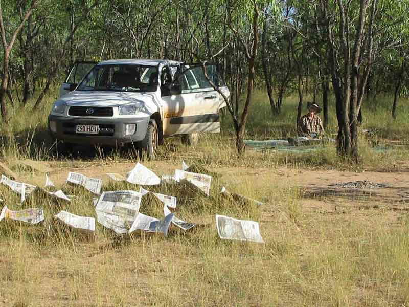 After picking up cardboards and jerry cans from Rebel Elick at Atherton, and copious quantities of newspaper (from a bottle shop) there, we escaped from the Tablelands as quickly as possible to get away from the rain, and basically enjoyed fine weather until we returned to the Great Dividing Range again a couple of weeks later. Despite advice from various tourist information centres to the contrary, all the Gulf roads we were interested in were open after the wet, even if some were pretty corrugated (ask Murray about the rattle in the RAVs back door ).