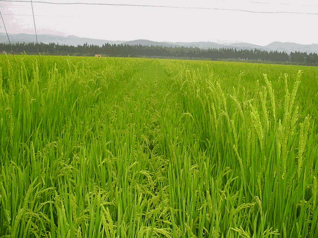 (The photo shows a mixed planting of high-yielding short modern cultivar with taller traditional glutinous rice. Disease in the blast-susceptible, high-value glutinous landrace is suppressed by the more resistant modern cultivar.)