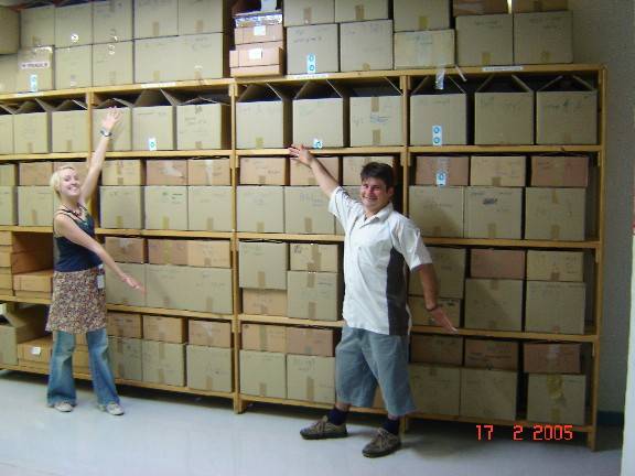 Interns Kirsty Elwell and Troy Brown proudly display the Atherton duplicates specimens processed by the 2005 Interns.