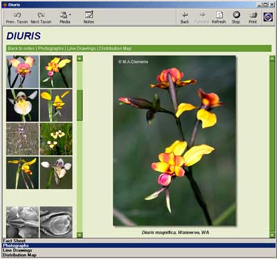 Australian native orchids have been the subject of detailed studies by members of the orchid research group at the Centre for Plant Biodiversity Research (CPBR) in Canberra. This research has involved aspects of orchid biology, morphology and conservation. It has resulted in the recognition and formal description of more than 350 new taxa and the erection of some 43 new genera by this research group. Now, with the support of ABRS, much of the information gathered by this group over the last fifteen years will be made available to the public in the form of a computer-based interactive identification key, to be known as the Interactive Key to Australian Orchid Genera.