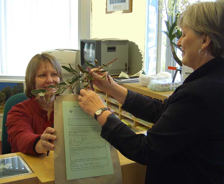 Specimens should wherever possible be brought in person to the Visitor Centre during open hours (9.30 - 4.30 every day except Christmas Day). If this is not possible, specimens may be posted once they have been pressed and air dried. Specimens once identified can be collected from the Visitor Centre.