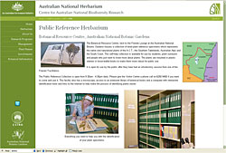 Since its establishment in the early 1990s the Internet has played an important role in community liaison and the dissemination of botanical information from the CANBR. Our web site was the second established in Australia, and our Herbarium was the first in the world to make its databases available to the public via the web.