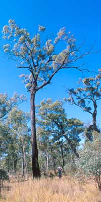 Two widespread species of Red Ironbark E. crebra (Narrow-Leaved Red Ironbark) and its close relative E. drepanophylla (Queensland Grey Ironbark) have long been regarded as highly polymorphic, warranting critical taxonomic revision. Tony Bean, a taxonomist with the Queensland Herbarium, has a draft taxonomic revision of the Red Ironbark complex in which he proposes to split numerous new taxa from E. crebra and E. drepanophylla. His revision is the result of extensive fieldwork and examination of herbarium specimens undertaken over the past decade.