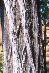 Eucalyptus represents a large, taxonomically difficult genus. There are numerous groups in the genus that display complex variation patterns, which often make identification at species level difficult. One such group is the Red Ironbarks from the series Siderophloiae Blakely (Eucalyptus section Adnataria). This series includes over 20 species, which are characterised by deeply, longitudinally furrowed, kino-impregnated bark, terminal compound inflorescences with buds shedding their outer operculum early and fertile stamens irregularly flexed inside the bud (see Figure 1).