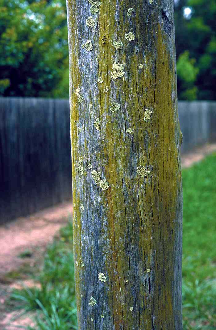 ![]() A street sign from Christmas Island in the Indian Ocean decorated with Usnea, a fruticose lichen. |