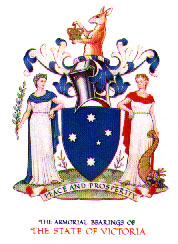Common Heath is depicted in the armorial ensign [illust] granted to Victoria on 28 March 1973 and recorded in the College of Arms, London. The current armorial ensign includes additions made to the earlier one, granted on 6 lune 1910, from which the floral emblem is absent. The more recent blazon, the description of the bearings in heraldic terms, states: 'upon a Compartment of Grass springing therefrom ... a representation of the Floral Emblem for the said State of Victoria that is to say the Pink Form of the Common Heath, Epacris impressa Labill'.