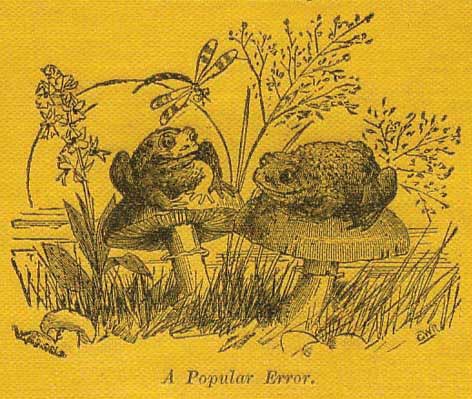 Not infrequently commercial artists and fanciful illustrators of children's books represent toads with toadstools, and occasionally even photographers contrive by trickery to juxtapose the two. In every such instance they draw their inspiration from the word, not from nature.