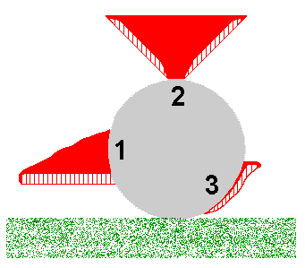 You may object to the enokitake example on the grounds that it's very artificial and so isn't highly relevant to what happens in the real world. In answer to that I note that aberrant forms of fruiting bodies of various fungal species have been found in naturally dark habitats such as mines or caves. But let's go out into the light and consider the polypores. Polypore fruiting bodies are generally corky to woody in texture and many polypore species usually produce shelf-like fruiting bodies, such as shown by the stylized cross-sectional figure 1 in the accompanying diagram. This figure represents a fruiting body growing out of a fallen log, shown in cross-section in grey. In figure 1 the fertile layer of basidium-bearing tubes is at the bottom of the fruiting body and the bulk of the 'shelf' is the solid red, sterile supporting tissue. For optimum spore release the tubes need to be vertical and the shelf-like fruiting body ensures the vertical orientation of the tubes. Suppose that for some reason the development of the fruiting body had been triggered at the top of the log. In that case, the need for the tubes to be vertical could induce a fruiting body of the type shown in figure 2. Finally, if the fruiting body development were triggered near the base of the log, we could get a fruiting body as shown in figure 3. A classification based on macroscopic features could lead to the fruiting bodies in figures 1, 2 and 3 being assigned to three different species, perhaps in different genera, even though all were produced from the one mycelium. Pycnoporus is a polypore genus and the orange fruiting bodies are usually shelf-like outgrowths from dead wood, with many shown here