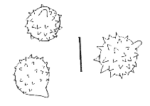 carneum spore on the right. The scale bar represents a hundredth of a millimetre.