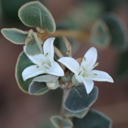 Correa alba is a neat medium sized bush with grey-green leaves with silver backs and white star flowers.