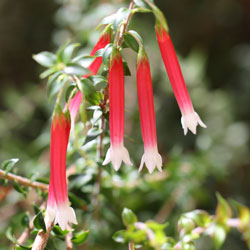 Epacris longiflora has thin tubular red flowers with white tips on a small prickly bush. Being 1–1.5 m tall, this plant forms a shrub with stiff branches. It belongs to the heath family whose native range extends from the central coast of New South Wales to southern Queensland.