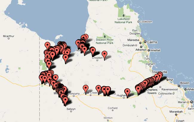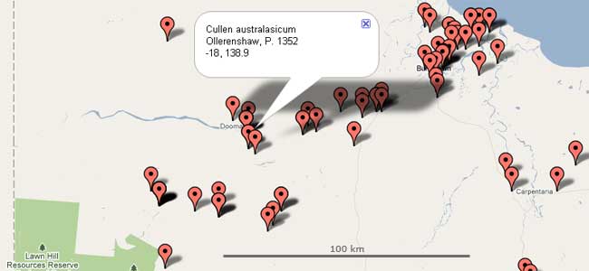 The herbarium collections mapped out on Google give and idea of where the collectors went and their rate of collecting. In this case the two staff flew to Townsville and hired a 4WD vehicle. The first collection is dated 1 July, the last is dated 17 July.