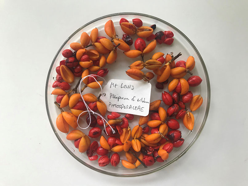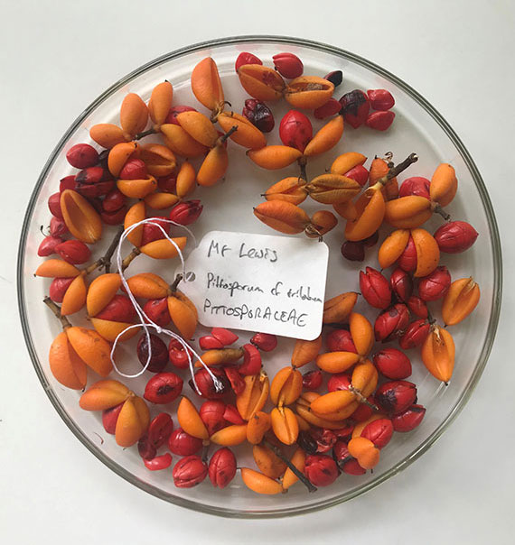 Fleshy fruits and seeds of Pittosporum trilobum (Pittosporaceae) collected in the Wet Tropics World Heritage Area of northeast Queensland. |