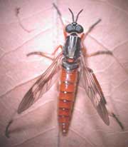 Many stiletto flies (Insecta: Diptera: Therevidae) are found in the Canberra region, and nearby areas such as Tallaganda National Park and Tinderries Nature Reserve. In the gardens in summer and spring the one centimetre long Ectinorhynchus phyciformis may be seen flying around myrtaceous flowers and up to 20 males are often observed swarming in tight groups in protected, sunlit positions about 2 m from the ground. The aim of this project was to conduct fieldwork that provided specimens for taxonomic research of the Australian insect fauna.