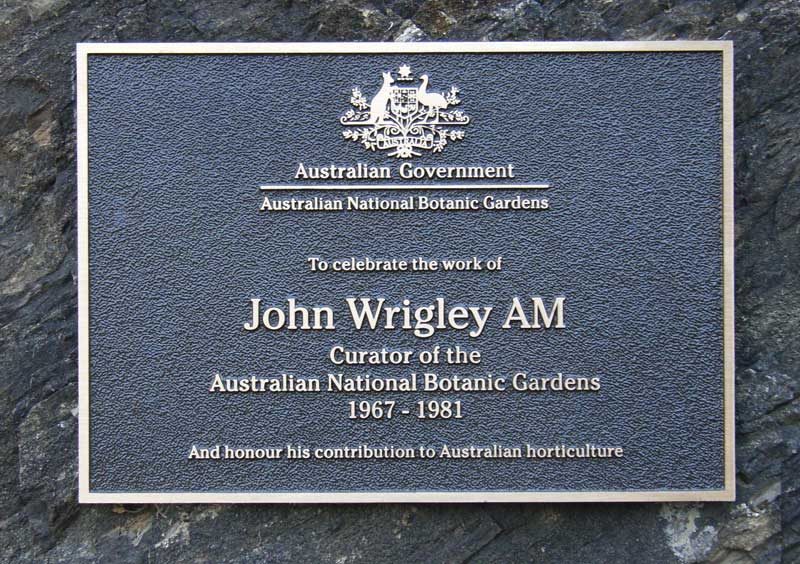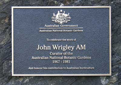 On 21 Oct 2005 the ANBG honoured its past Curator, John Wrigley, as part of the celebrations for the 35th anniversary of the official opening of the ANBG in 1970.