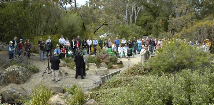 Ceremony for the John Wrigley plaque on 21 October 2005, near the Rock Garden waterfall