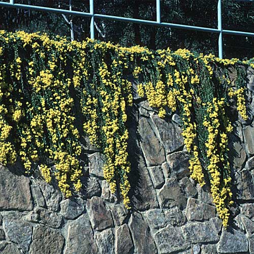 Spring visitors to the Australian National Botanic Gardens often remark on the many prostrate Acacias cascading over walls or mounds or forming extensive groundcovers. Species include Acacia baileyana prostrate form, A. cardiophylla 'Gold Lace', A. cultriformis 'Austraflora Cascade', A. dealbata 'Kambah Karpet', and A. pravissima 'Kuranga Cascade'.