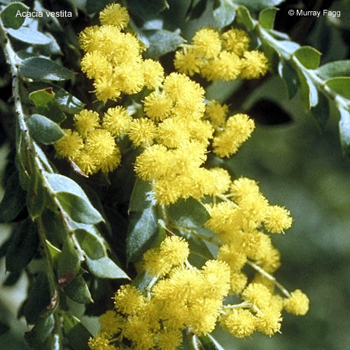 The Hairy Wattle (Acacia vestita), sometimes called Weeping Boree, occurs naturally in a few localities on the western slopes and southern tablelands of New South Wales. This Acacia is a graceful, free-flowering shrub with weeping branches and 'downy' foliage.
