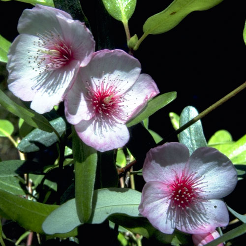 Eucryphia lucida distributionThe genus Eucryphia is in the family Cunoniaceae, a southern hemisphere family of about 27 genera. There are about 8 species of Eucryphia in the world; five being in Australia. There are currently four cultivars of Eucryphia lucida: ‘Pink Cloud', a pale to medium pink flowered variety; ‘Ballerina' a pale pink flowered variety with deep pink stamens; ‘Leatherwood Cream' a variegated leaf variety and ‘Leatherwood Silver', a variety with silver edged leaves.