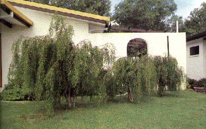 Rounded shrub to 3 m by 3 m across with beautifully pendulous branches. Leaves are narrower than the type to about 5 cm long. Very small flowers.