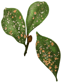 At first it would seem that anything growing on a plant leaf must be detrimental to that plant and the following are some of the theoretical arguments that have been advanced to support that hypothesis. If part of a leaf is covered the total leaf photosynthesis is reduced so that there is less food production. The rhizines that anchor a lichen to its host leaf, may penetrate the leaf and so provide potential entry points for pathogenic organisms. Moreover, moisture held by the lichens creates a more humid microhabitat on the leaf surface, potentially ideal for various pathogenic micro-organisms. As plausible as such arguments may sound they must still be tested, rather than automatically accepted, and the reality is not necessarily what the arguments suggest. A case in point is the argument about epiphyll cover reducing leaf photosynthesis. In fact there may not be much effect on plant photosynthesis. This was the subject of a study in Queensland's Mossman Gorge National Park that looked closely at the effects of lichens on leaves of Calamus australis, a palm, and Lindsayomyrtus racemoides, a plant in the family Myrtaceae. The latter species was formerly known by the name Eugenia racemoides. Eleven lichen species were involved and the amount of light transmitted through the lichens to the underlying leaf varied from about 30 to 70 percent of the incident light, depending on the lichen species. The researchers found that the host leaves compensated for the lichens and that total photosynthesis was not reduced. In both host plants the chlorophyll content in those parts of the leaves colonized by lichens was significantly higher than in uncolonized leaf areas. Of course, these results need not hold for other species of lichens and perhaps not for other vascular host species. However the lichen study confirms that the simplistic theoretical conclusion about photosynthesis, given early in this paragraph, cannot hold in general