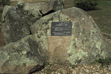 Many people will have seen the damaging effects that some metals can have on lichens. Throughout the world there are numerous commemorative metal plaques fixed to boulders that have been placed in sites exposed to the weather. Such plaques are often of bronze, an alloy of copper, and copper forms the basis of several fungicides. The boulders, covered with lichens, may have been plucked from the wild and had plaques attached. Or, the boulders may have been extracted from beneath the earth and still been bare when the plaques were affixed. Once affixed the plaques are washed by rain. Compounds toxic to lichens leach out and are carried down the boulder in the runoff. Many existing lichens in the flow path are killed or, if the boulder started bare, many lichens are inhibited from growing in the flow path. After some time it is common to see a lichen desert below a plaque but with good lichen growth in areas not reached by the runoff. You can see this in the accompanying photograph. The dominant greenish lichens on the boulder belong to the genus Xanthoparmelia. Another example is shown by this photo