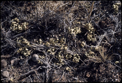 Vagrant lichens are found in a variety of generally open, hot to cold, windswept habitats in widespread parts of the world - mallee or saltbush country in Australia, the Eurasian steppes, Arctic tundra, North American short-grass prairie, the low-altitude Namib Desert, high-altitude Andean páramo - and that list is not exhaustive. There are fewer than 100 vagrant species and they belong to several genera, especially Aspicilia and Xanthoparmelia. Here